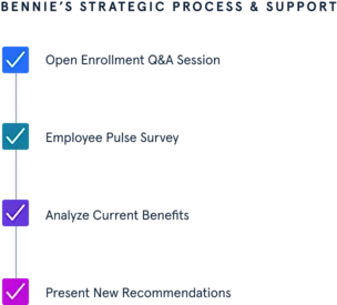 Bennie also worked with Pliancy to administer a survey to their team to gauge what benefits their employees were most interested in. Then, Bennie and Pliancy audited overall benefits utilization. After analyzing their current benefits situation, the Bennie team was able to make recommendations that took into account Pliancy’s projected growth.